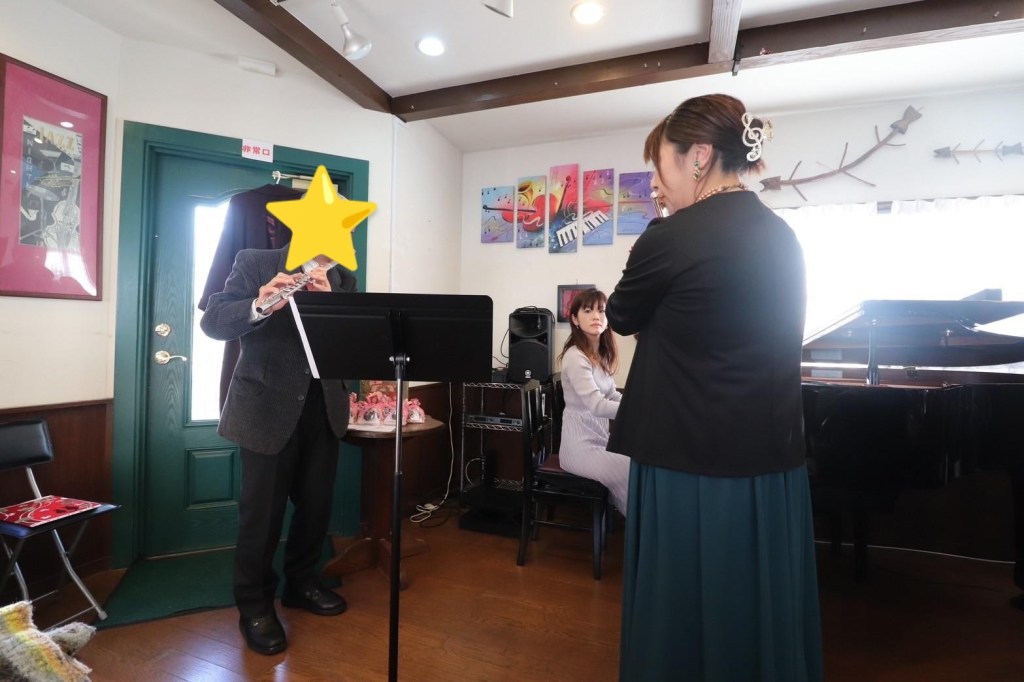 大人の生徒さんで趣味で楽しむ方、管楽器ソロコンクールに向けて頑張る中学生の子の演奏を聴けました。