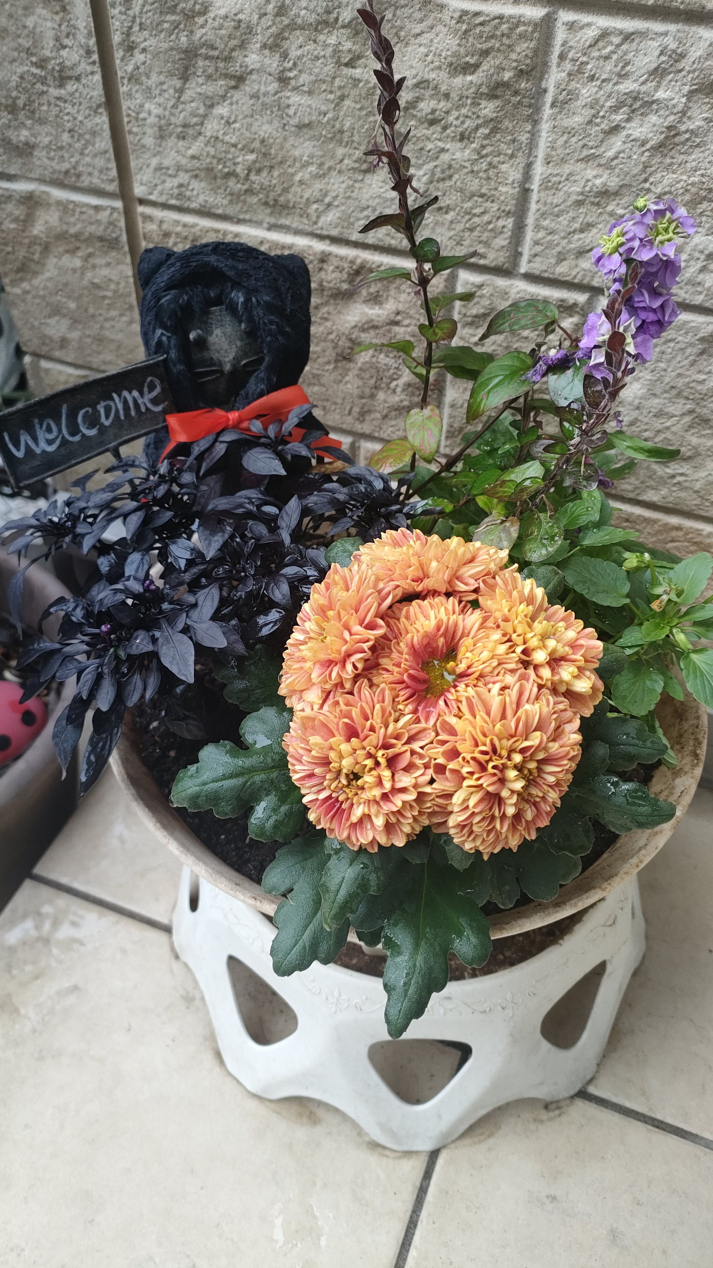 ハロウィンの時期になりましたので教室玄関の寄せ植えも少しハロウィン仕様になりました🎃